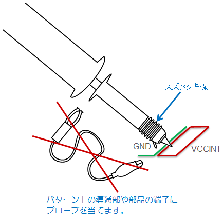 VCCINT → GND → プローブ(GND)→ プローブ先端 → VCCINT
