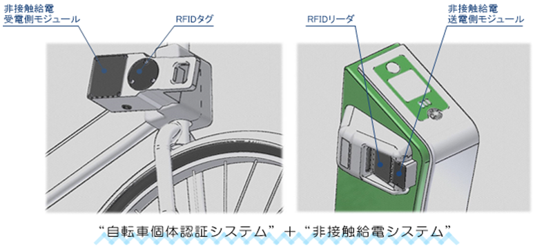 レンタル事業に必要な、既存の自転車個体認証システムに合わせて、非接触給電技術によるバッテリー充電を実現し、バッテリー充電に必要な人件費を抑えることが出来ています。